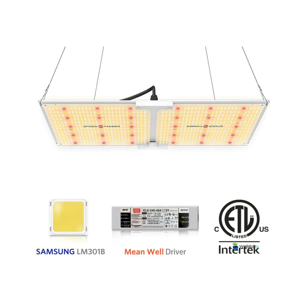 Výrobce Spider Farmer používá pro své pěstební LED panely pouze nejkvalitnější komponenty, jako jsou Samsung LED čipy a napájecí zdroje MeanWell, které mají až o 50% delší životnost než běžné pěstební světla.