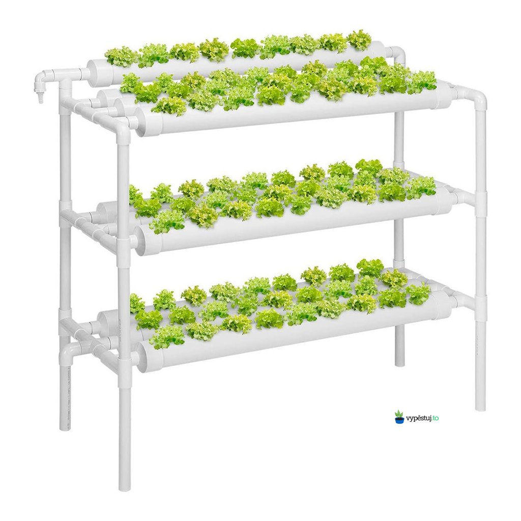 Hydroponický NFT systém na bylinky a zeleninu. Urban Grow Hydro Set pro 108 bylinek. Snadná instalace, jednoduchý provoz. Rozměry sestaveného systému 98x48x95 cm.